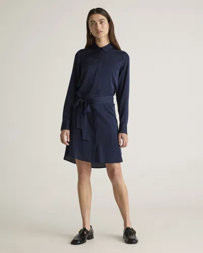 Women's 100% Washable Silk Stretch Shirt Dress In Navy