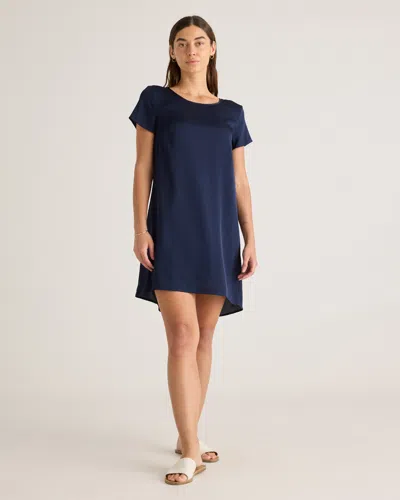 Women's 100% Washable Silk Stretch T-shirt Dress In Navy