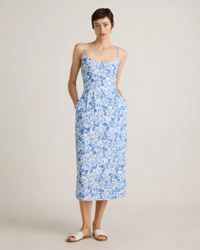 Women's 100% European Linen Scoop Neck Midi Dress In Floral Waterfall