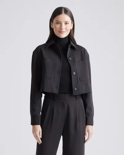 Women's 100% Merino Wool Cropped Shirt Jacket In Black