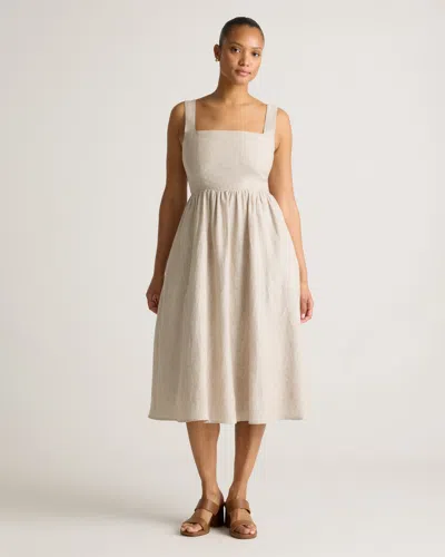 Women's 100% European Linen Fit & Flare Midi Dress In Flax