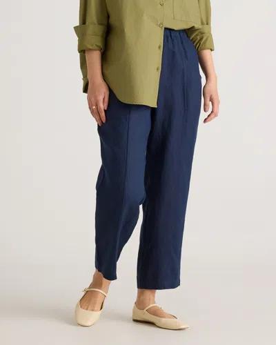 Women's 100% European Linen Tapered Ankle Pants In Deep Navy