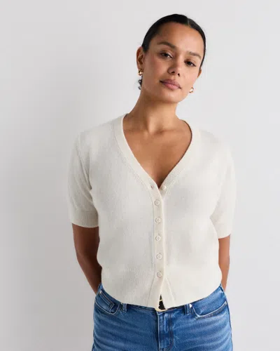 Women's Mongolian Cashmere Short Sleeve Cardigan Sweater In White