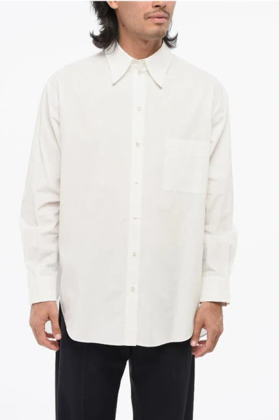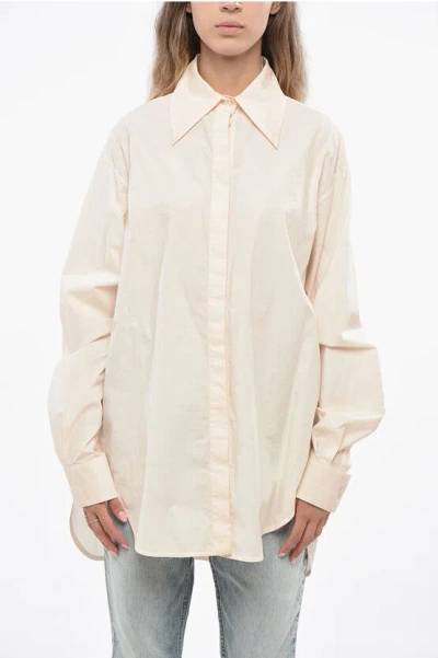 Hidden Closure Popline Cotton Oversized Shirt In Neutral