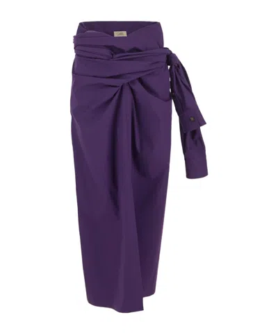 High-waisted Gathered-detail Skirt In Purple