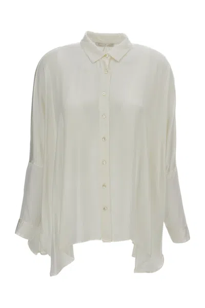 Flowy White Button-down Shirt With Asymmetrical Hem