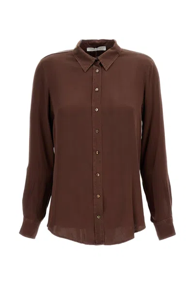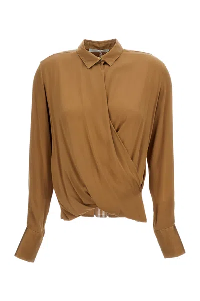 Wrap-style Long-sleeved Shirt With Draped Front In Brown