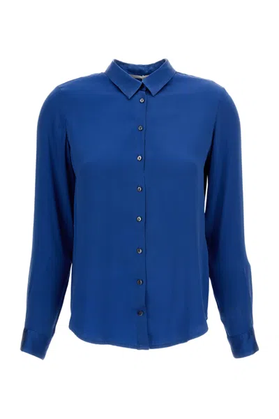 Long-sleeved Button-up Shirt With Classic Collar In Blue