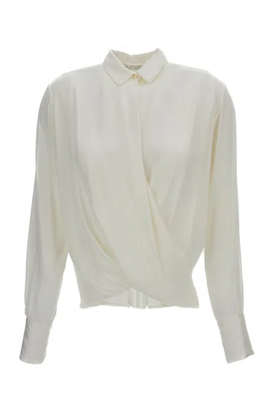 Wrap-style White Blouse With Draped Front In Multi