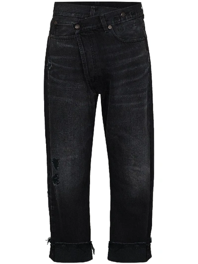 Gray Chain Embellished Cropped Denim Chore Jacket In Black