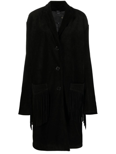 Fringed Suede Single Breasted Coat In Black