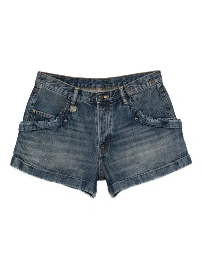 Crossover Denim Shorts In Blue