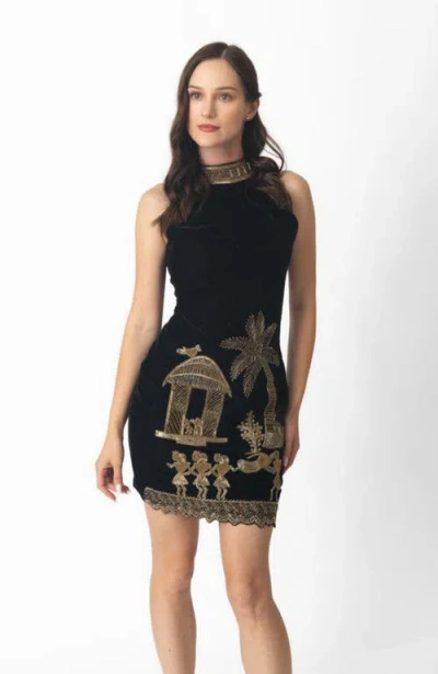 Arial Velvet Mini Dress Embroidered In Black