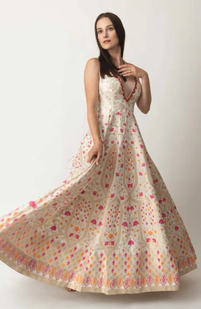 Selina Embroidered Silk Jacquard Gown In Gold