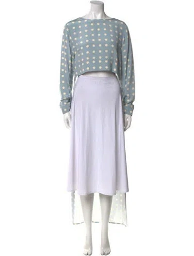Pre-owned Silk Polka Dot Print Crop Top In Blue