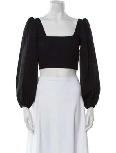 Pre-owned Square Neckline Three-quarter Sleeve Crop Top In Black