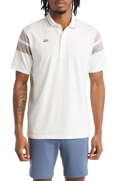 Taylor Cap Stripe Performance Organic Cotton Golf Polo In Snow White/ Clay