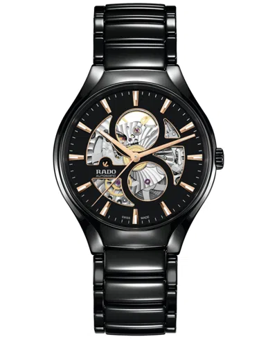 Unisex Swiss Automatic True Square Skeleton Black Rubber Strap Watch 38mm