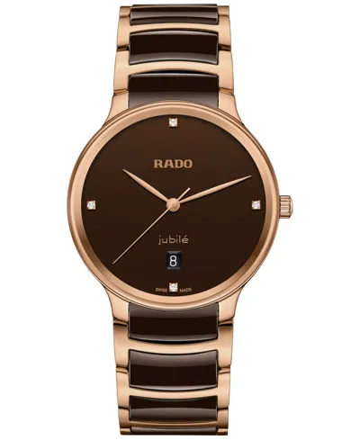 Unisex Swiss Centrix Diamond (1/20 Ct. T.w.) Brown Ceramic & Rose Gold Pvd Bracelet Watch 40mm In Black