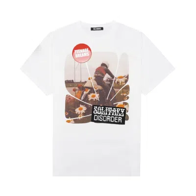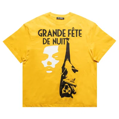 The Raf Simons edit is punctuated with flamboyant pieces in vivid colors alongside sleek, dark fabrics that lend an understated twist to the house aesthetic. The range encompasses fitted styles with vivid and grayscale graphics and artistic decorations.