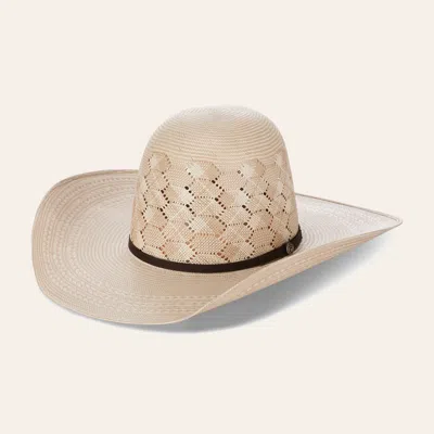 Kids' Ivory And Tan Shantung Honeycomb Vent Open Crown Straw Cowboys Hat In Neutral