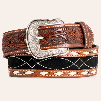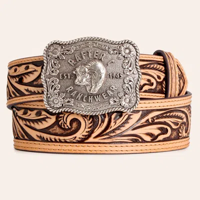 Boys' Tan Tooled Leather Ranchwear Buckle Belt In Brown