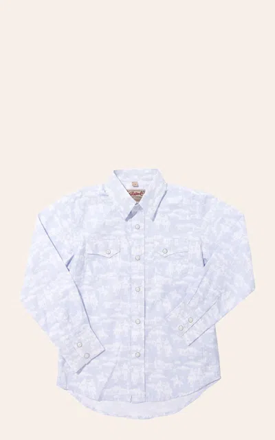 Boys' White & Light Blue Western Print Shirt