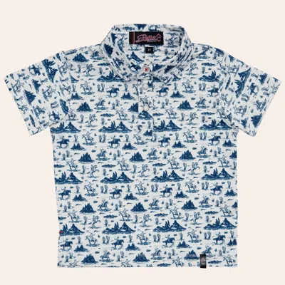 Boys' White & Blue Desert Print Pearl Snap Polo Shirt