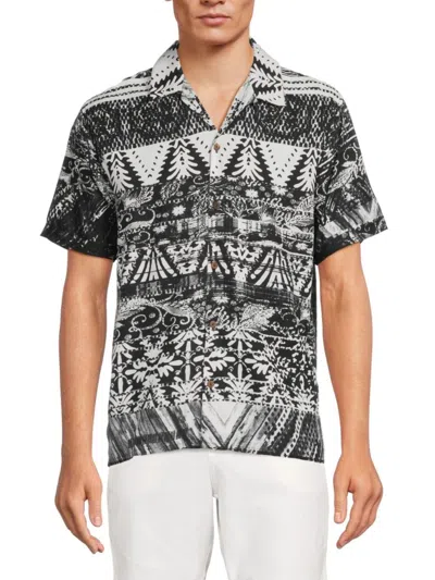 Men's Folk Print Camp Shirt In Black White