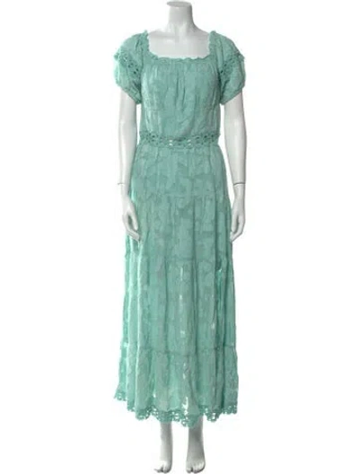Pre-owned Square Neckline Long Dress In Blue