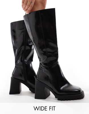 Sphere Heeled Knee Boots In Toffee Croc-brown