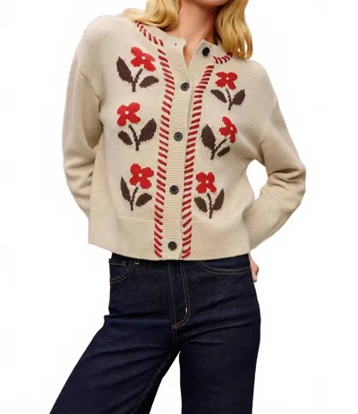 Mavie Cardigan In Carmine Floral In Neutral