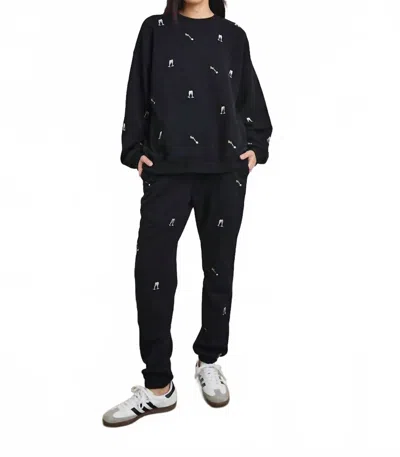 Varsity Sweatshirt In Black Champagne Embroidery