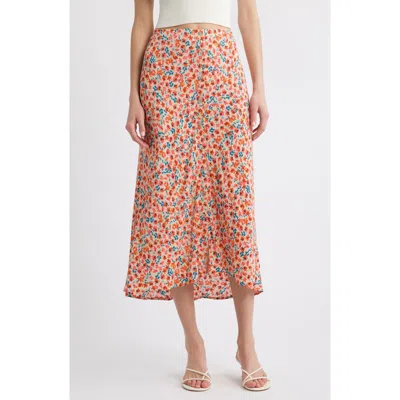 Rosetta Floral Print Button Front Midi Skirt In Red Posy