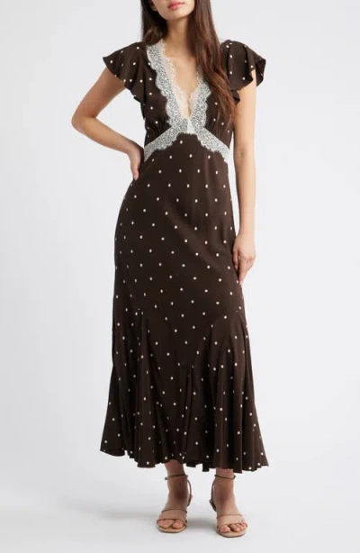 Mattia Lace Trim Polka Dot Maxi Dress In Black