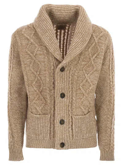 Aran Cardigan With Shawl Neckline In Sand