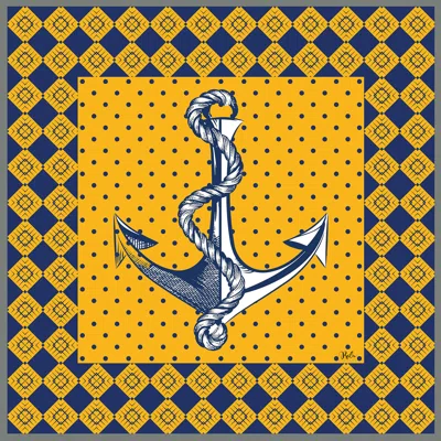 Men's Orange Silk Pocket Square Anchors Aweigh Blue Yellow