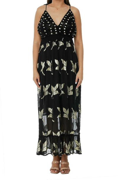 Ranees Ruffle Sleeveless Cotton Maxi Dress In Neutral