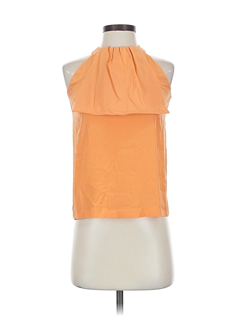 Pre-owned Sleeveless Silk Top Orange Halter Neckline Tops