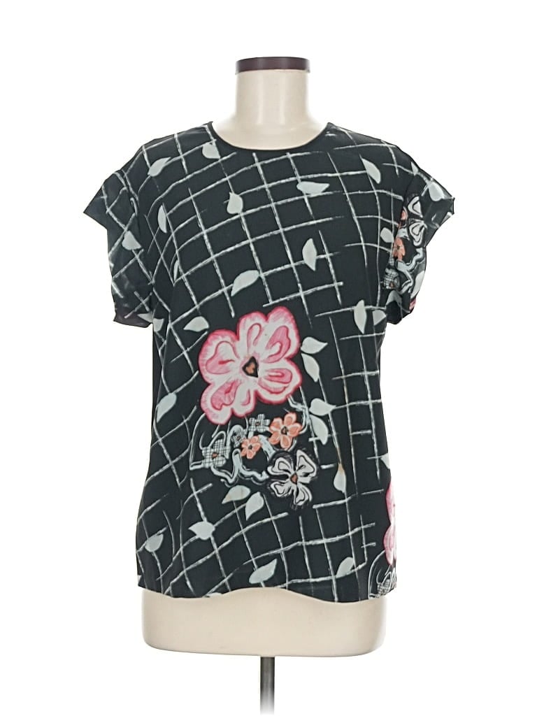 Pre-owned Short Sleeve Top Black Graphic Pattern Square Neckline Tops