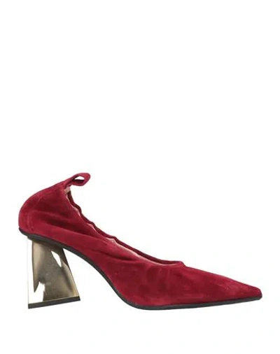 Woman Ballet Flats Red Size 8 Leather In Burgundy
