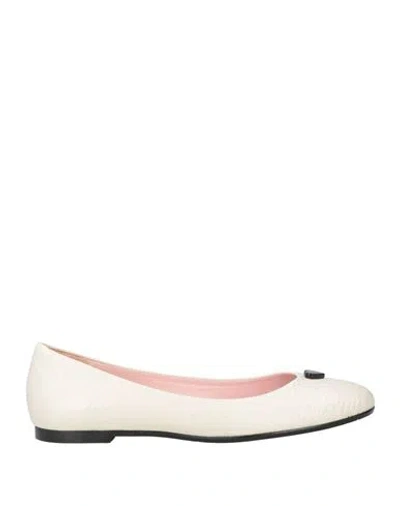 Woman Ballet Flats Ivory Size 7 Leather In White