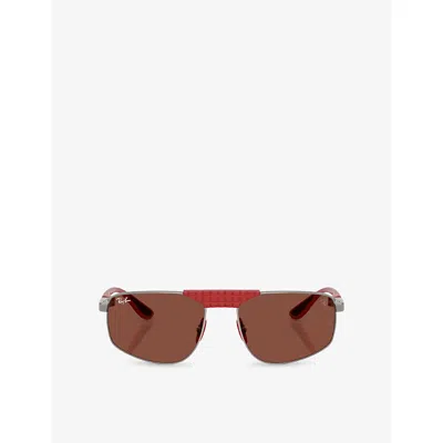 Womens Silver Ray-ban X Scuderia Ferrari Rb3776m Metal Sunglasses In Brown