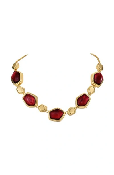 Red Velvet Necklace In Gold