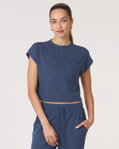 Rebody Essentials Short Sleeve Crop Tee In Navy