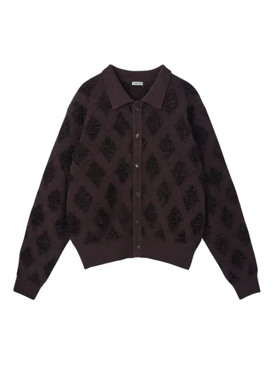 Argyle-pattern Polo Cardigan In Brown