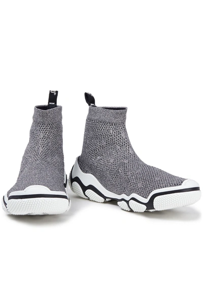Metallic Cotton-blend Mesh High-top Sneakers In Silver