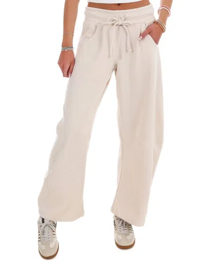Baggy Barrel Mid Rise Sweatpants In Beige In White
