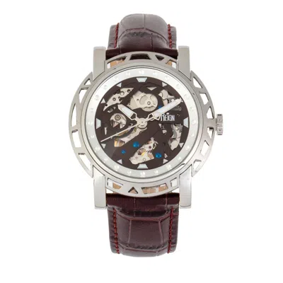 Stavros Automatic Skeleton Leather-band Watch In Brown