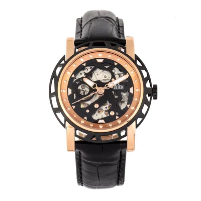 Kahn Automatic Skeleton Leather-band Watch In Black